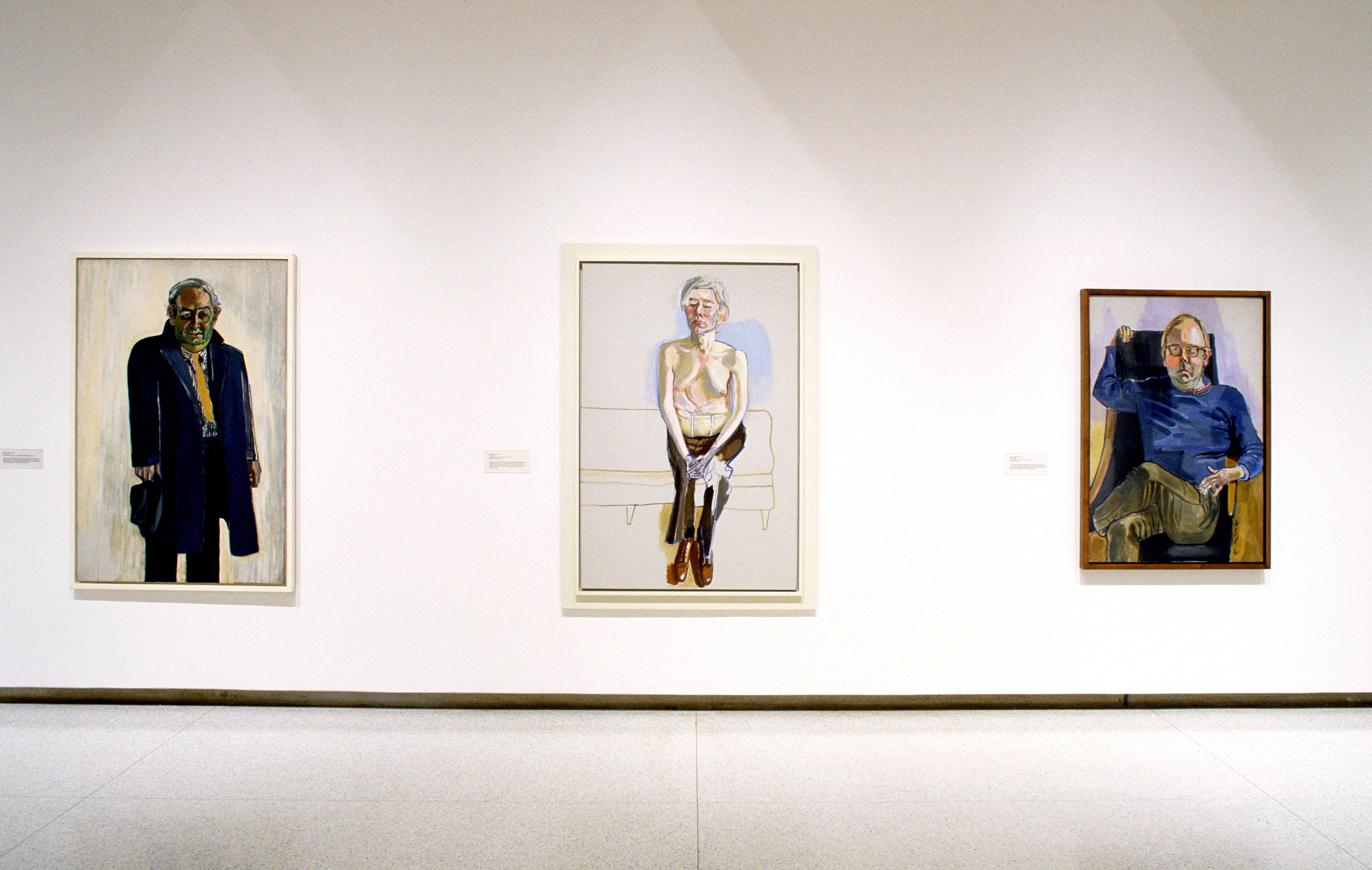 In the early 1960s, Neel received her first recognition outside a small circle of admirers. Her astounding emergence, late in life, corresponded with the dawning of the women’s movement and with the art world’s reawakened interest in the human figure. Neel’s work of the next two decades reflects her increasing importance in the larger art world. Her portraits of fellow artists, including Andy Warhol, Frank O’Hara, and Faith Ringgold, document a professional world in which she was suddenly a seemingly improbable star. It was during these years that Neel perfected the style for which she is now best remembered: large-scale portraits in the realist tradition of Thomas Eakins and Robert Henri, but newly inventive and unforgettably direct.