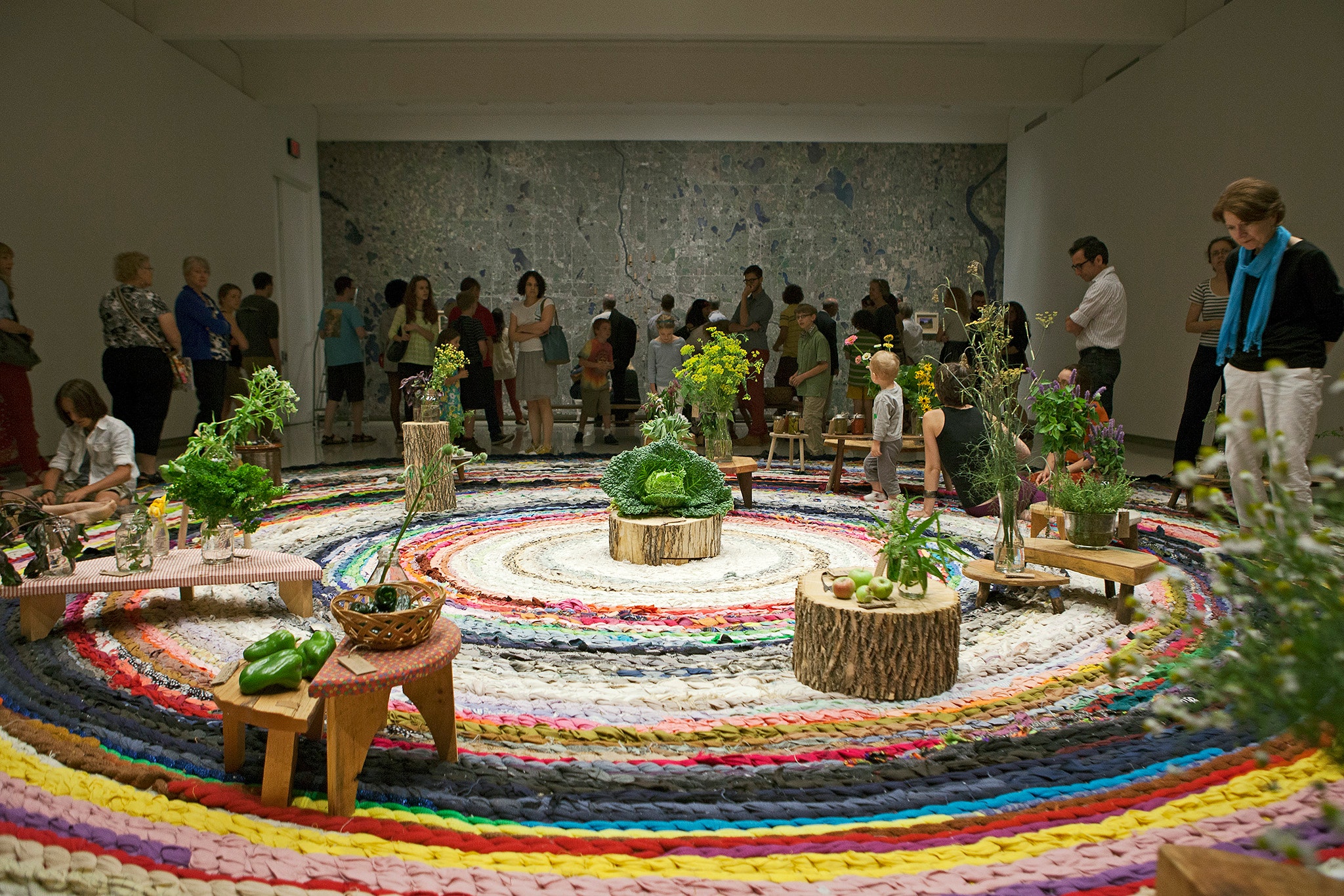 Walker artist-in-residence Fritz Haeg presents Domestic Integrities A05, the next iteration of an ongoing series that examines ways in which gardens and landscapes are harvested and brought into the home. The centerpiece of the installation is a large crocheted rug nearly 30 feet in diameter, made by participants on-site. The space will host weekly rotations of what the artist refers to as “Domestic Integrities”—activities and items based on or made with materials gathered from their environment, from pickled vegetables and baked bread to herbal arrangements and homemade remedies. Some remain on display for weeks while others change daily, but there is always something fresh from the land to drink, taste, smell, and touch.
