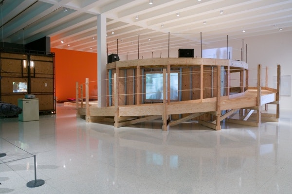 How can an art gallery be more than a gallery? Can it also be a stage, a media station, an info lounge, a salon, and a cinematheque? How can it be a community—a chaotic utopia or utopian chaos that creates a community? These challenging questions activate OPEN-ENDED (the art of engagement), an exhibition that invites visitors to go beyond mere viewing to playing an active role in the art. To fill this tall order, it brings together artists with whom the Walker has formed ongoing relationships, to construct and energize a shared space.