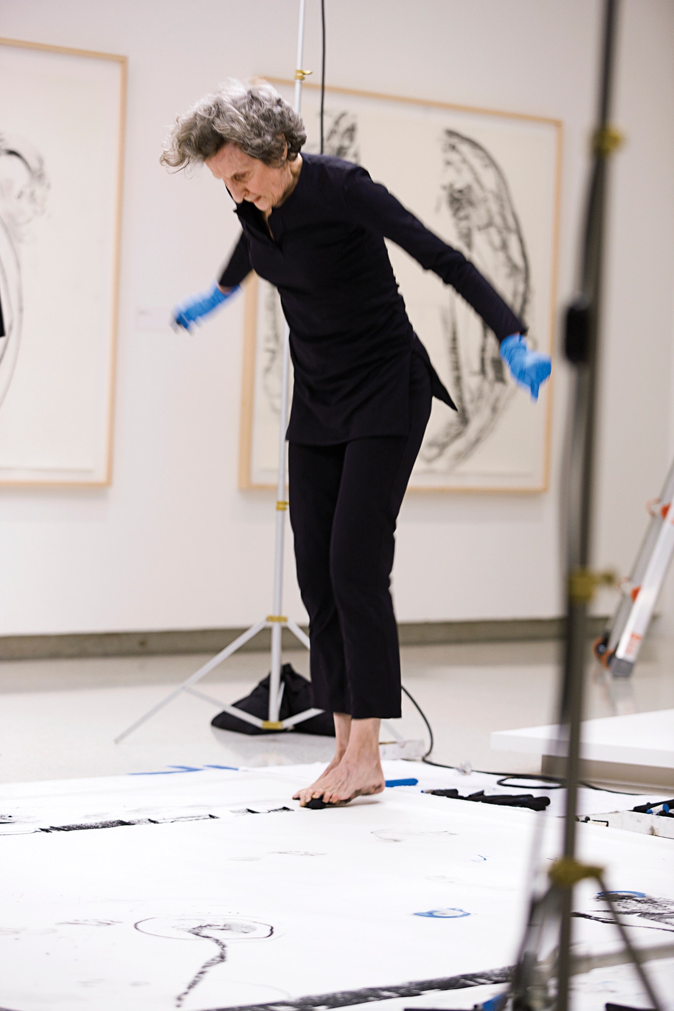 Featured are Floor Drawing/Performance from the 2008 Walker exhibition Trisha Brown: So that the Audience Does Not Know Whether I Have Stopped Dancing, as well as Raft Piece (1974/2008) and Man Walking Down the Side of a Building (1970/2008).